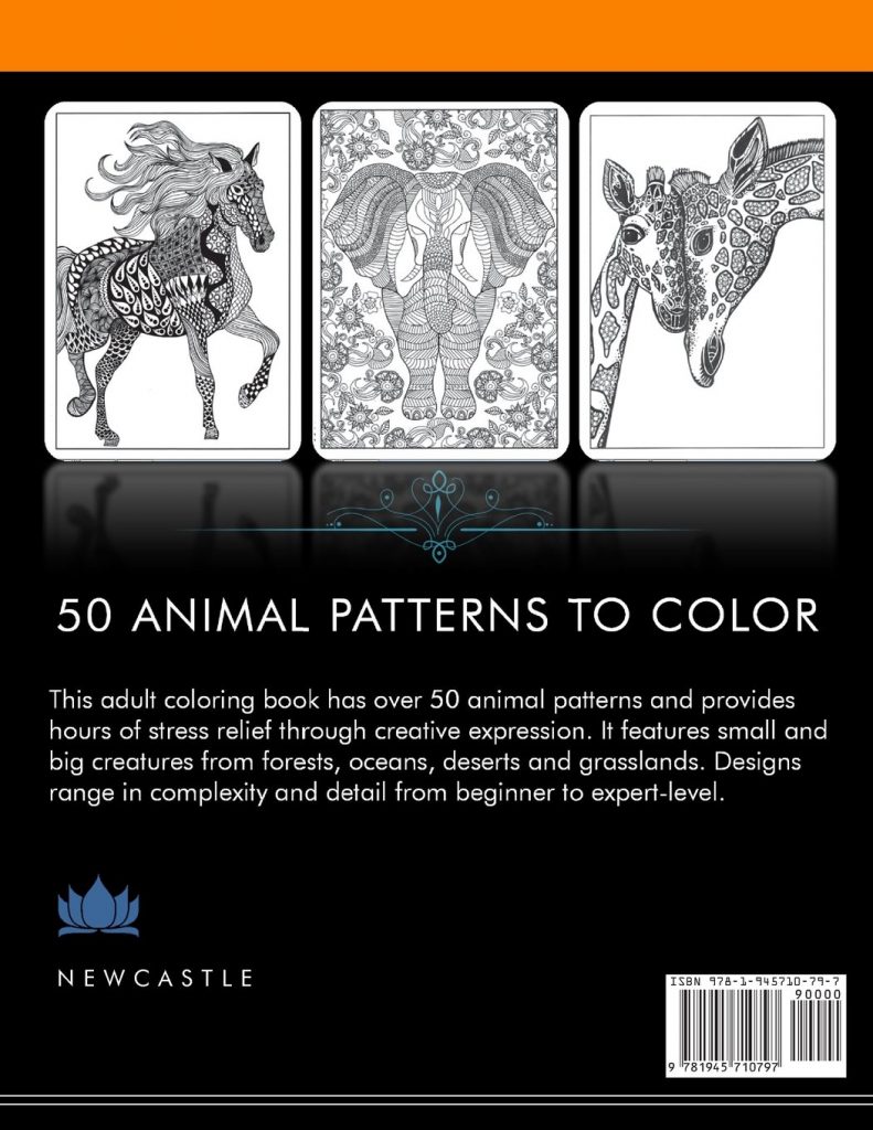 This is a wonderful collection of animal designs for coloring. The drawings are beautiful – each one with a clearly delineated animal, filled with interesting designs to color in. The focus is definitely the animals – the backgrounds are plain white. But the figures themselves are plenty intricate enough to provide outstanding finished works.