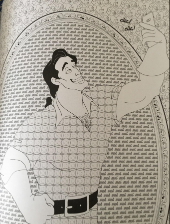 Overall, it seems to be a bit of a slap-dash publication. There are misquotes by characters (such as Scar saying “Long life to King” vs “Long live the King”), Prince John has become Prince Jean (I guess he’s French) and Gaston has an iPhone and a Facebook page. Hmmm. And a drawing of the Tic Toc Croc is filled with the phrase “Tic Tac.” Apparently the croc has bad breath.